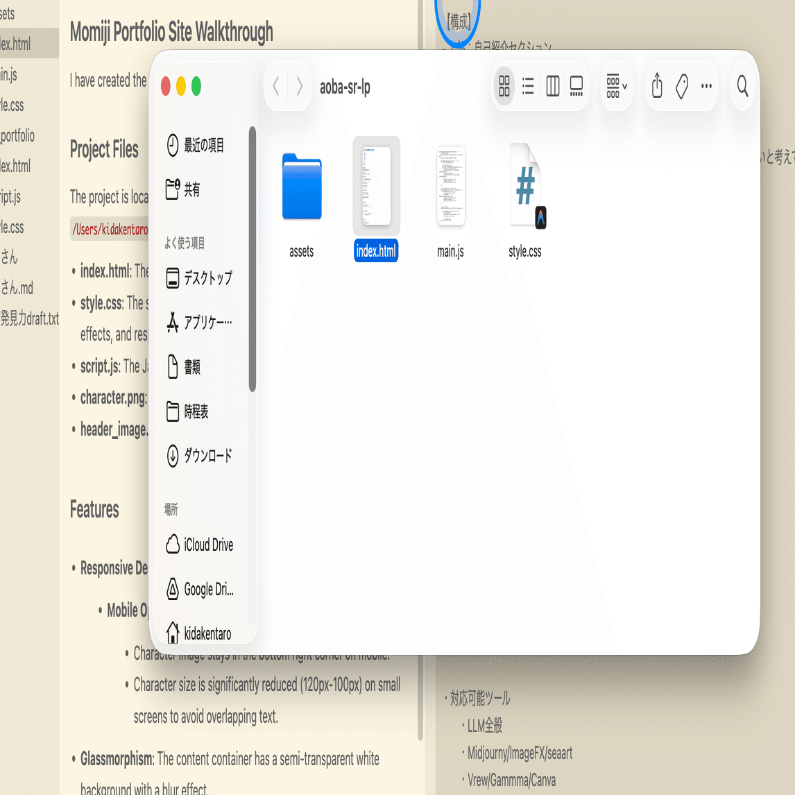 あれやこれや指示を出すだけでポートフォリオサイトが完成しました。