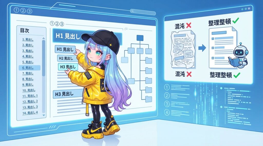 なぜかというと、見出しや目次によって段落を整理することで、AIにとって「理解しやすい文書構造」が生まれるからです。
