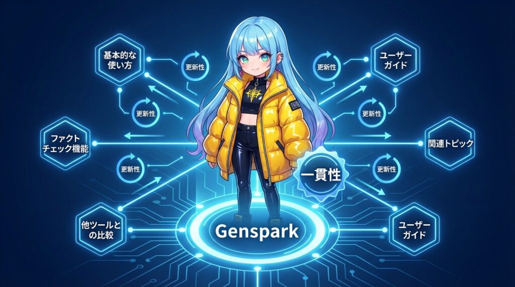そうすることで、読者は「この人はGensparkについて詳しいな」って認識してくれるし、AIも「この人はこのトピックについて継続的に情報を発信している」って評価してくれる。