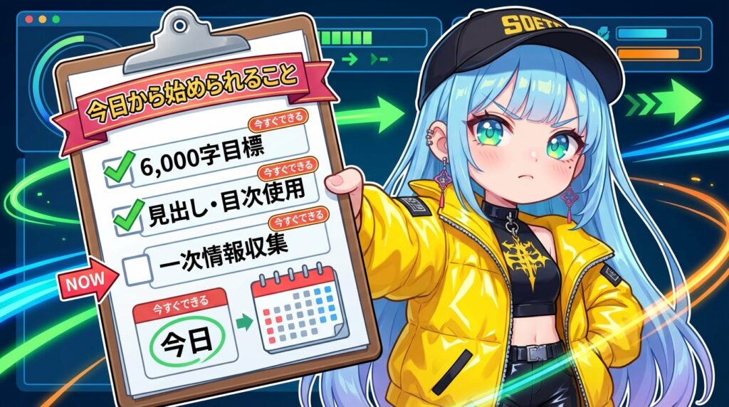 6,000字書くためには、具体的な事例を盛り込む、実践的な知見を示す、自分の経験から得た学びを深掘りする、っていう「密度」が必要なんです。